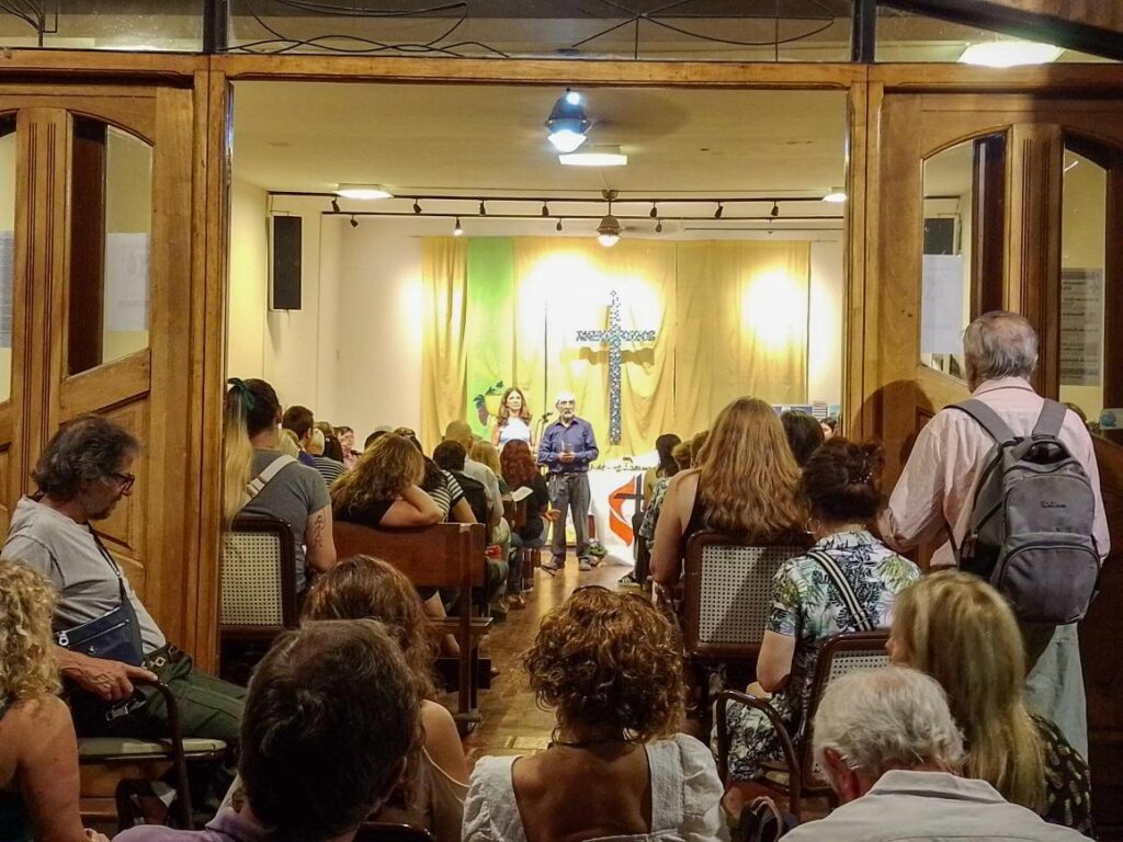 El sábado 23 de noviembre celebramos el Culto de Acción de Gracias por el 60° Aniversario del templo de nuestra comunidad con la participación de todos los grupos de la iglesia: infancias, adolescencias, mujeres, hombres, estudio bíblico y Taller de la memoria, tras lo cual se descubrieron dos placas conmemorativas en honor a Alicia Casas y Pedro Benítez, quienes fueron personas muy significativas en la vida de nuestra iglesia. Para finalizar, compartimos una cena.
